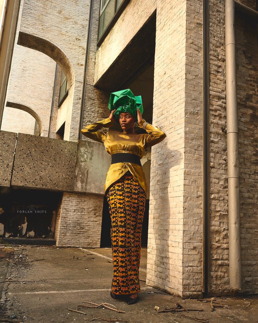 The Uloeze Dress is a refined fusion of heritage and modern craftsmanship . Crafted from hand-dyed funta cotton in our signature Igwe print, it is elevated with luminous metallic lamé and intricate hand-applied glass beadwork.